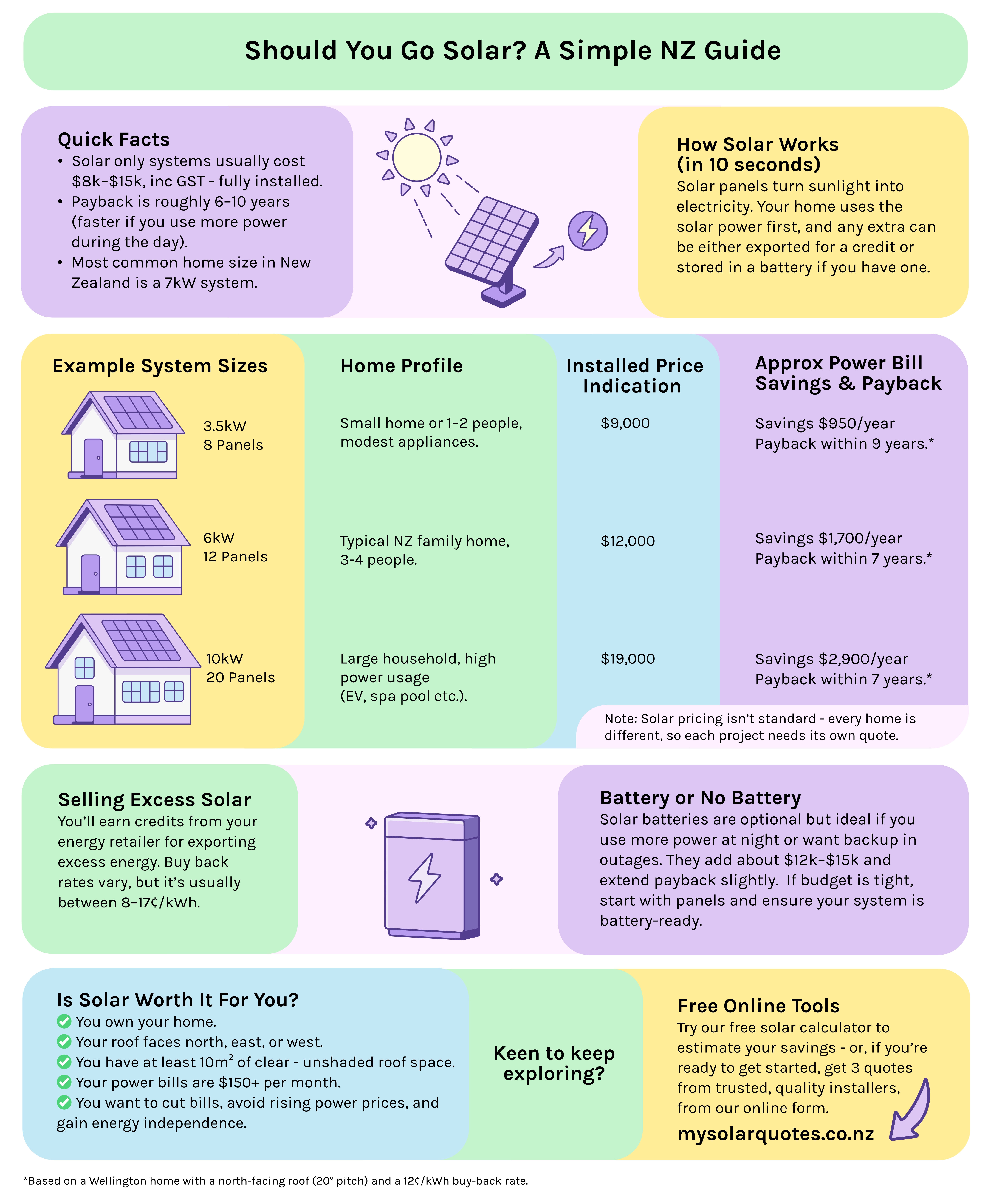 Thinking about installing solar panels in New Zealand but not sure if it’s worth it? Here’s everything you need to know in this one infographic below.